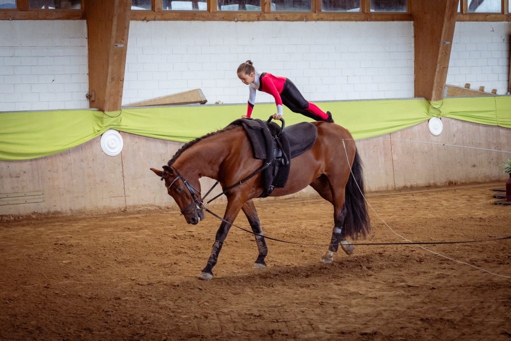 Voltigieren verbindet Athletik, Eleganz und Teamgeist. Kinder, Jugendliche und Erwachsene wachsen über sich hinaus, wenn sie auf dem Pferderücken akrobatische Übungen zeigen – getragen vom Rhythmus des Pferdes, vertraut auf die Longenführung und gestützt durch das Miteinander im Team.
